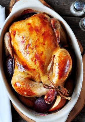 Запеченный цыплёнок со сливами и яблоком. Очень ароматное и сочное блюдо!