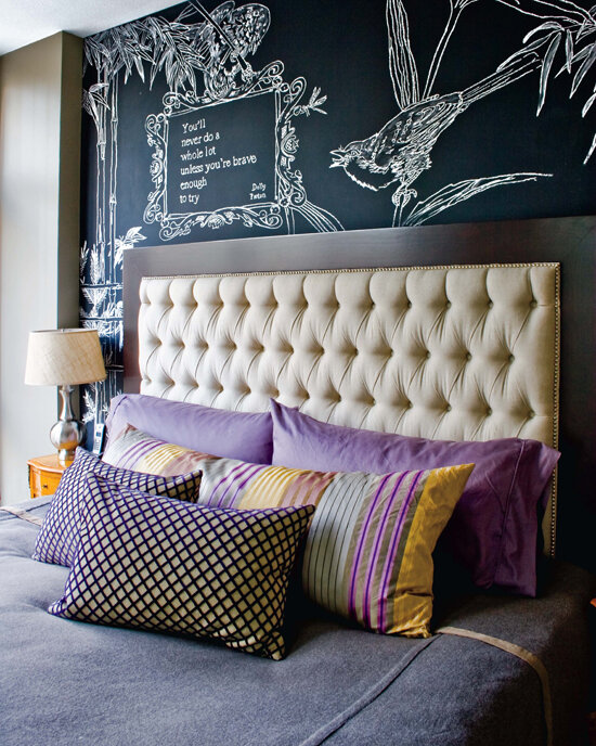 У вас появилось желание изменить интерьер спальни? Вы хотите в ней что-то переделать или украсить, но ваш бюджет не предусматривает затраты на воплощение ваших замыслов? Тогда представляем вашему вниманию несколько интересных и недорогих способов для декорирования вашей спальни. Узоры и рисунки на стенах нередко можно увидеть в журналах о современном дизайне интерьеров или помещениях, над оформлением которых работали профессиональные дизайнеры, услуги которых вам не по карману. Не спешите огорчаться, ведь на самом деле, похожие рисунки вы можете сделать самостоятельно, используя специальные трафареты. Их можно сделать из пергаментной бумаги собственноручно, либо же приобрести уже готовые в специальных магазинах. Таким же образом можно декорировать и мебель, особенно с однотонной поверхностью. Вас раздражает висящее на стене «голое» зеркало? Так почему бы не одеть его в нарисованную рамку-обманку? Во-первых, вы сэкономите на изготовлении или покупке настоящей рамки, а во-вторых, такая р