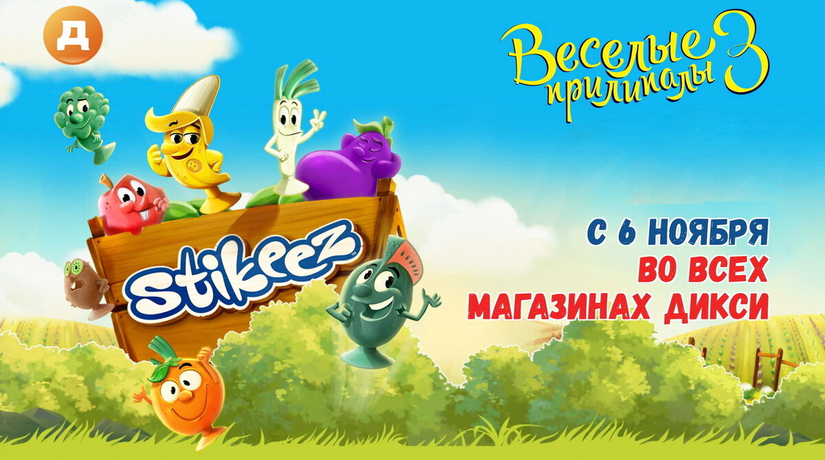 Что-то назревает... 6 ноября 2017 года сеть универсамов Дикси запускает новую акцию: Весёлые прилипалы-3! С 6 ноября 2017 во всех магазинах Дикси! Акция проводится с 6 ноября по 17 декабря 2017. Акция с прилипалами стартует в Дикси уже в третий раз, и первые два раза она стала хитом. В третий раз фигурками будут фрукты, ягоды, овощи. Фигурка выдаётся за каждые 500 рублей в чеке (табак и алкоголь не учитываются). Ждём и товары спонсоров, за которые можно будет получить дополнительных прилипал! Фигурки выдаются на кассе после того, как вы получаете чек, в закрытых пакетиках. Каждый раз сюрприз! Всего в коллекции 24 игрушки. Скачай новую игру и собирай мир весёлых прилипал, охоться за сокровищами! Будут специальные дни обмена, когда будет легко меняться повторками. Полная коллекция, 24 фигурки Собираем минифигурки ягод, овощей и фруктов, герои мультфильма Пришельцы на Луне! Полный список: перец, редька, морковь, огурец, баклажан, капуста, тыква, свёкла, виноград, картофель, киви, а