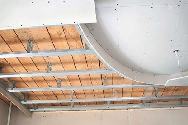 Настильный потолок отличается от подшивного отсутствия при его монтаже балок перекрытия комнаты. Если помещения небольшие, шириной не больше, чем 2500 мм, и каждое из них будет перекрываться отдельно, то подобная конструкция потолка вполне подойдет для его устройства.