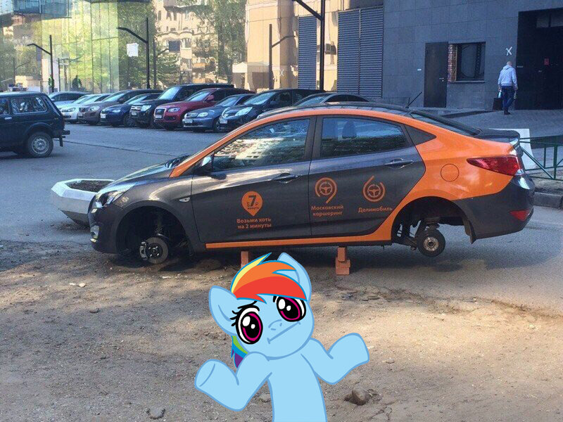 Услуга краткосрочной аренды авто очень популярна на западе, а в нашей прекрасной Стране она вот-вот появилась. Суть в том, что ты качаешь себе приложение на телефон, оплачиваешь любую понравившуюся тачку и ву-аля, карета открыта, езжай куда хош. Тем более машину можно снять на время от двух минут до нескольких суток. Удобно, не правда ли? Только не в этой стране, брат, только не в этой стране... Подобный проект стартовал в Уфе, где уже на следующее утро в большинстве машин не хватало колпачка/зеркальца/ручки/хренучки, а кто-то и вовсе не стал мелочиться, сняв с неё двери, а кто-то - колёса.