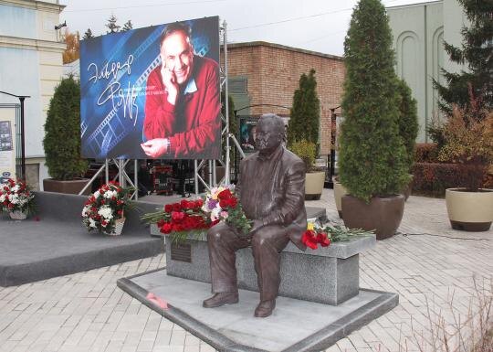 27 октября в Самаре торжественно открыли первый в России памятник уроженцу этого города, почётному гражданину Самары, народному артисту СССР, великому кинорежиссёру Эльдару Рязанову. Памятник установлен рядом с домом, где родился режиссёр, в сквере, носящем его имя. Установка скульптуры приурочена к 90-летию режиссёра, которое будет отмечаться 18 ноября. Автор памятника – грузинско-итальянский скульптор Важа Микаберидзе. Композиция представляет собой бронзовую фигуру Рязанова, сидящую на мраморной скамейке. «Памятник очень похож по облику на моего папу. Он не пафосный, он сидит расслабленный, с иронической доброй полуулыбкой, которая была ему свойственна в жизни», – поделилась впечатлением дочь режиссёра Ольга Рязанова.
