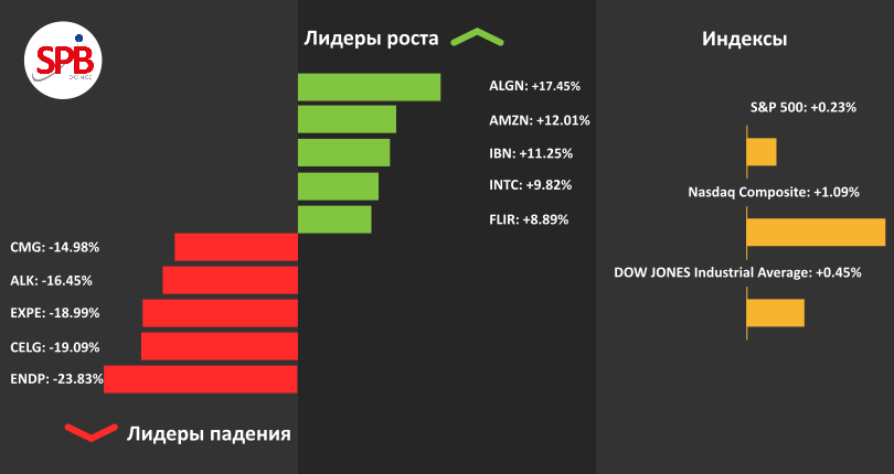 Акции компании Align Technology, Inc. (SPB: ALGN) прибавили за неделю 17,45%. Финансовый отчет компании оказался лучше ожидания аналитиков. Выручка компании за отчетный период составила $385,3 млн, прибыль на акцию составила $1,01, аналитики прогнозировали выручку на уровне $360 млн, а прибыль на акцию в районе $0,81.