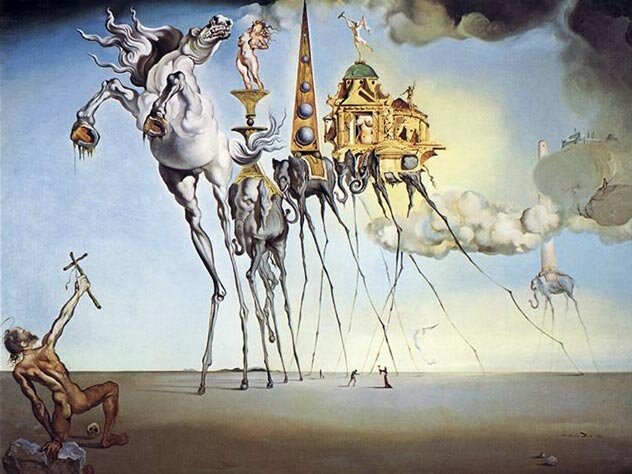 Слона с площади Минервы в Риме работы эпохи барокко Джованни Лоренцо Бернини Дали изображает на многих своих картинах, и это пристрастие необъяснимо, как и любовь к слоновьим черепам. Три тысячи слоновьих черепов художник мечтал расположить в бухте Порт-Льигата. Тонкие ножки, готовые обломиться, в целом ряде картин символизируют единственную зыбкую грань между реальностью и подсознанием, между праведностью и грехом.