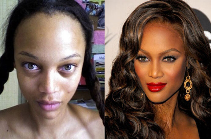 Американскую супермодель, телеведущую Тайру Бэнкс совсем не узнать без косметики. Мейкап творит чудеса. До и после нанесения макияжа – это два совершенно разных человека. Напомним, что мировую известность девушка получила, работая в модельном бизнесе в самых лучших уголках земного шара: в Париже, Милане, Лондоне. Позже Тайра стала работать на телевидении. Она была ведущей популярного реалити – шоу «Топ модель по американски».