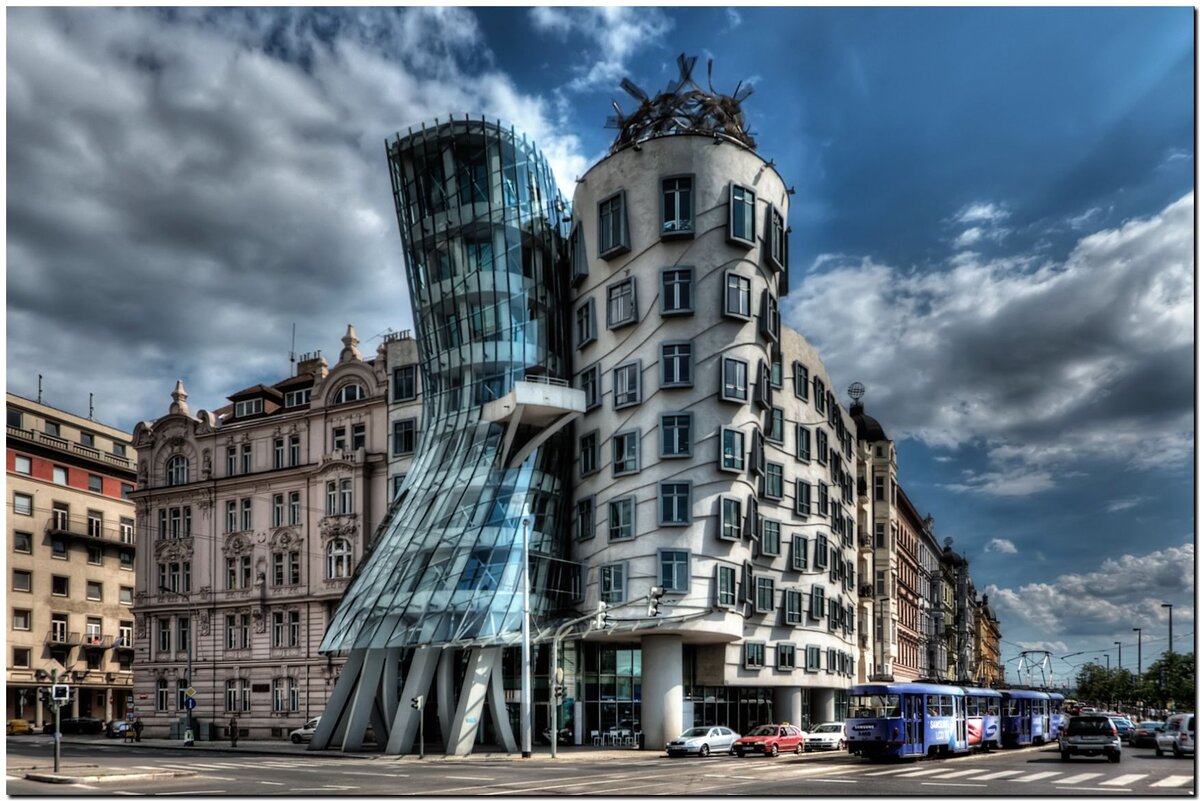 Разработанный чешским архитектором Владо Милуничем вместе с известным американским архитектором Фрэнком Гери, танцующий дом Праги, прозванный «Фред и Джинджер» в честь танцоров Фреда Астера и Джинджер Роджерса, расположен на берегах реки Влтавы в центре города. Первоначально это была картинная галерея, здание позже было выкуплено компанией финансовых услуг.