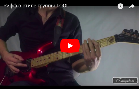 Всем привет! На днях разучил рифф на электрогитаре, написанный в духе группы TOOL - моей любимой команды уже на протяжении лет 15)) Те, кто знаком с творчеством этой неповторимой группы, скажут, что данный рифф - точная копия "джамби", но это не совсем так. Стоит взглянуть в табы и все станет понятно. Кстати, ссылка на табы и ноты находится в конце видео. Так же на сайте Гитаршколы Вы найдете качественный минус-трек, под который можно заниматься. Он сделает Ваши занятия более продуктивными и увлекательными. Может быть кто-то обратил внимание на гриф моей гитары, а именно на его голову. Это виниловая наклейка с альбомом группы TOOL. (Заказывал на guitarsticker, можно заказать абсолютно любой дизайн по своему изображению). . . . .