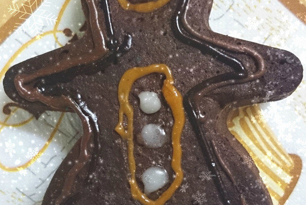 9. Молотый имбирь - 1 чайная ложка Инструкция приготовления 1. Смешайте масло, сахар, молоко и какао в кастрюле, поставьте ее на средний огонь и помешивайте, пока смесь не дойдет до кипения. После остудите. 2. Отдельно слегка взбейте вилкой или веничком яйцо. Добавьте в смесь и взбейте миксером. 3. Смешайте муку с содой и имбирём и затем добавьте к смеси. Хорошенько взбейте до образования мягкого и однородного теста. 4. Разогрейте духовку до 180 градусов (отметка 5). Выкладывайте тесто в силиконовые формы ёлочек, снеговиков или человечков равномерным и не очень толстым слоем, т.к. тесто будет подниматься (количество получившегося бисквита будет зависеть от размера формочек). Выпекайте 15 минут, проверив