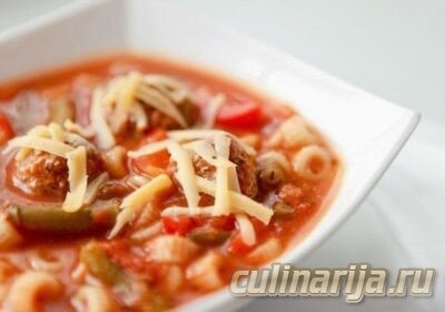 Разлить итальянский суп с фрикадельками в глубокие порционные тарелки. Посыпать пармезаном и подавать с хрустящими итальянскими тостами.
