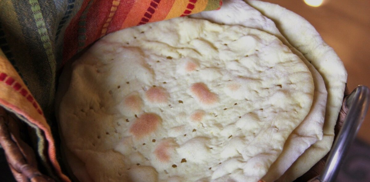 - семена кунжута Способ приготовления: 1. Нагреваем стакан воды до 40-46º C. Выливаем его в большую миску, добавляем дрожжи, сахар, соль и растительное масло, тщательно перемешиваем. Постепенно добавляем муку, замешиваем тесто (если необходимо, добавляем больше муки). 2. На плоскую поверхность насыпаем немного муки, месим тесто примерно 7 минут. Помещаем тесто обратно в миску, закрываем пищевой пленкой. Даем тесту подняться примерно 40 минут. 3. Отрываем кусок теста, раскатываем на посыпанной мукой поверхности. 4. Нагреваем противень на плите, помещаем на него раскатанное тесто, посыпаем семенами нигеллы и кунжута, готовим, затем переворачиваем. П