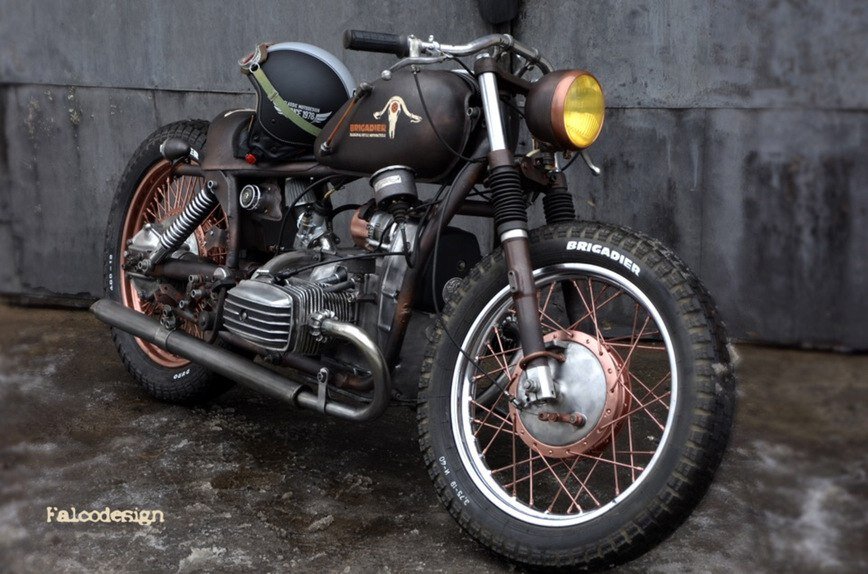 Его постройкой занималась белорусская студия Falcodesign, которая уже известна своими кастомами на базе Днепра. Однако данный байк получился настолько крутым, что тут же попал во все мировые чарты кастомайзеров.