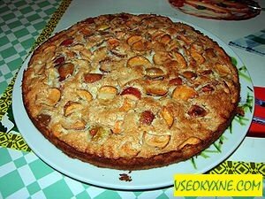 3 яйца взбить, растереть добела со стаканом песка, добавить 1 стакан муки. 3 кислых зеленых яблока очистить от кожуры и порезать на ломтики. Выложить их в форму смазанную маргарином и обсыпанную панировкой. Сверху их залить тестом. Разогреть духовку до 180 градусов. Выпекается пирог 40 минут.