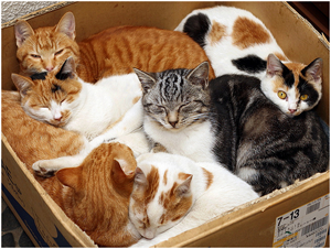 Если социум кошек многочисленный, то кошки избегают пользоваться территорией друг друга и собираются вместе только на время общения с хозяевами или во время еды, ужина или завтрака. Именно в этом момент чаще всего и происходят столкновения в сообществе, когда все члены семьи оказываются на единой территории.