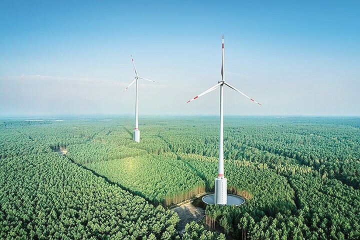 Рекордное по высоте сооружение умеет не только вырабатывать электричество, но и «запасать» его В Германии построена экспериментальная ветроэлектростанция из четырех ветряков сравнительно небольшой мощности. Однако это самые высокие подобные сооружения в мире. Они используют свою высоту не только для того, чтобы активнее вращаться (наверху сильнее ветер), но и для запасания десятков мегаватт-часов энергии, пишет Electrek. Четыре ветряка имеют башни высотой от 155 до 178 метров, размах лопастей у них — 137 метров. Поскольку верхняя половина лопастей поднимается над башней (68,5 метров), то самый высокий ветряк из четырех достигает 246,5 метров в высоту — по верхней кромке верхней лопасти. Это мировой рекорд — в мире вообще не так много рукотворных сооружения подобной высоты и до сих пор не было ни одной ветровой турбины, которая бы ее достигала. С каждым метром роста ветряка в высоту его выработка растет на 0,5-1,1 процента. Происходит это потому, что выработка энергии пропорциональна к