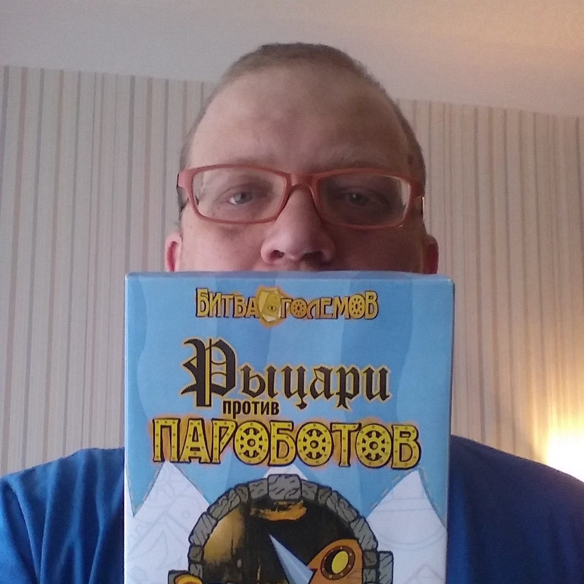 Прочитал, что надо писать правду о товаре, так как это 'привлекает покупателя и не вызывает у него разочарования от покупки'. Фигня наверное, но надо же попробовать. Ну так вот вся правда о моей настольной игре: Рыцари против Пароботов это игра придуманная и нарисованная от и до большим дядей ростом 180 см и весом под 100 килограмм с видом бандита (особенно небритым). И этот дядя придумывает детские настольные игры. Игра про то, что вы и 1-3 любителей быстрой наживы оказываетесь в 'лабиринтах подземелья'. На деле это подвальчик из 9 комнат, причем карту вы успешно профукали и начинаете играть толпой зная только пару тройку соседних комнат. Мало того - у вас есть команда раздолбаев-рыцарей, которые мало того что умудряются на старте терять оружие, так инести могут не более одной штуки в руки. И вам надо эту команду как то оставить целой, пока не закончится колода карт в игре (или у всех рыцари не разбегутся). Еще проблема что бабки король дает только за паровых роботов и за то, что эти