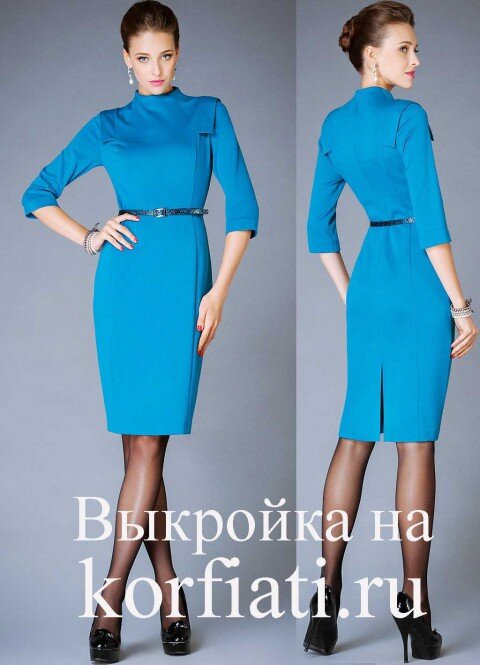 Элегантное и очень эффектное платье сегодня мы предлагаем вам сшить своими руками. Это платье — образец стиля, и поэтому оно будет уместно как в офисе, так и для похода в театр или встречи с друзьями. За счет вертикальных рельефных швов такое платье будет идеально сидеть на полной фигуре. Силуэт платья слегка заужен к низу (длина платья от талии – около 60 см), однако шлица по спинке позволяет чувствовать себя при ходьбе комфортно. Отлетные прямоугольные детали, вшитые в рельефные швы, делают это платье настоящей дизайнерской моделью! Сшить платье своими руками