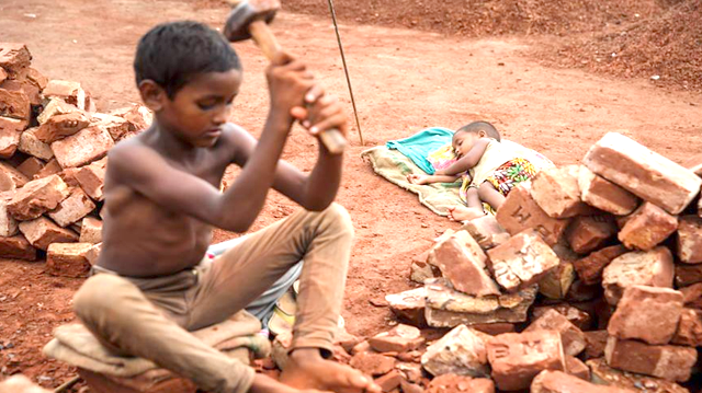 Он не покладая рук работает вместе со своей матерью, чтобы заработать на жизнь. Рахат рассказывает, что, когда начал заниматься этой работой, его пальцы долгое время сильно болели. Но трудолюбивый мальчик не показывал своей боли и продолжал работать, так как отыскать новое место работы было практически не возможно. Рахат ломает молотком кирпичи. За 100 сломанных кирпичей ему платят всего 40 рупий. Он ни копейки не тратит из этой суммы на себя, а идет в магазин, чтобы приобрести продукты для своей маленькой сестрёнки.