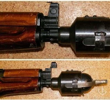 Эти, так называемые "стаканы", изготовленные на одном из заводов Тирасполя, были для защитников Приднестровья настоящей "выручалочкой" - наворачивались на ствол автомата вместо компенсатора, внутрь плотно до буртика запалом вперед вставлялась РГД-5, при этом рычаг поджимался приваренной к корпусу "стакана" пластиной. Выдергивай чеку и все - выбирай цель да стреляй! Правда, в магазине должен быть холостой патрон. Все манипуляции занимали несколько секунд, но зато граната летит метров за пятьдесят!