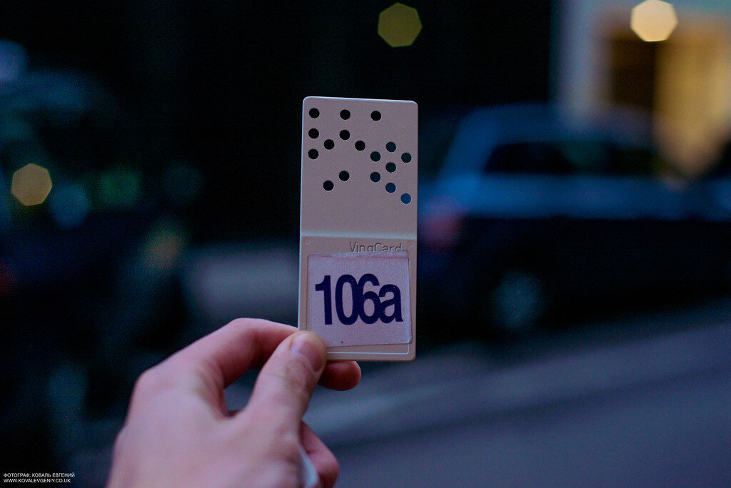 В каждой современной гостинице стоят электронные замки где ты подносишь карту к двери и она открывается. В первый раз в жизни повстречал электронный ключ с перфокартой. Такой древний замок стоял в гостинице в Кракове.