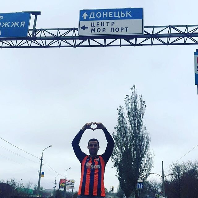 По дороге на матч с ФК «Мариуполь» капитан донецкого «Шахтера» сделал фото на память при въезде в Донецкую область. Так близко к дому команда не была уже больше трех лет.