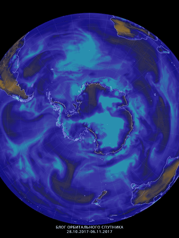 Анимация изменения относительной влажности над Антарктикой 28.10-06.11