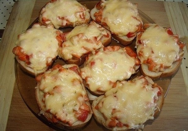 Ингредиенты: ●Сосиски — 3-4 Штук ●Помидор — 1 Штука ●Чеснок — 2 Зубчика ●Майонез — 1 Ст. ложка ●Кетчуп — 3 Ст. ложки ●Хлеб пшеничный — 10 Ломтиков ●Сыр — 100 Грамм ●Зелень свежая — По вкусу ●Перец черный молотый — По вкусу Приготовление: Сосиски нарезаем мелкими кубиками и выкладываем в глубокую миску. Помидор так же нарезаем кубиками, зелень мелко шинкуем и добавляем в тарелку к сосискам. Выдавливаем чеснок через чесночницу. Майонез и кетчуп выкладываем к остальным ингредиентам и все тщательно перемешиваем. На противень выкладываем хлеб и на каждый кусочек выкладываем по 1-1,5 ложки начинки. Сверху посыпьте черным молотым перцем. Сыр трем на крупной терке и посыпаем им каждый кусочек, но не следует добавлять слишком много сыра, так как он в процессе запекания будет растекаться по противню. Ставим бутерброды в заранее разогретую духовку на 15 минут, а затем можем оценить результат всей семьей.
