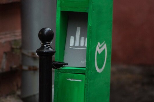 Анонимный уличный художник Hioshi разместил в Петербурге инсталляцию об очередях к банкоматам. Подробнее читайте здесь.