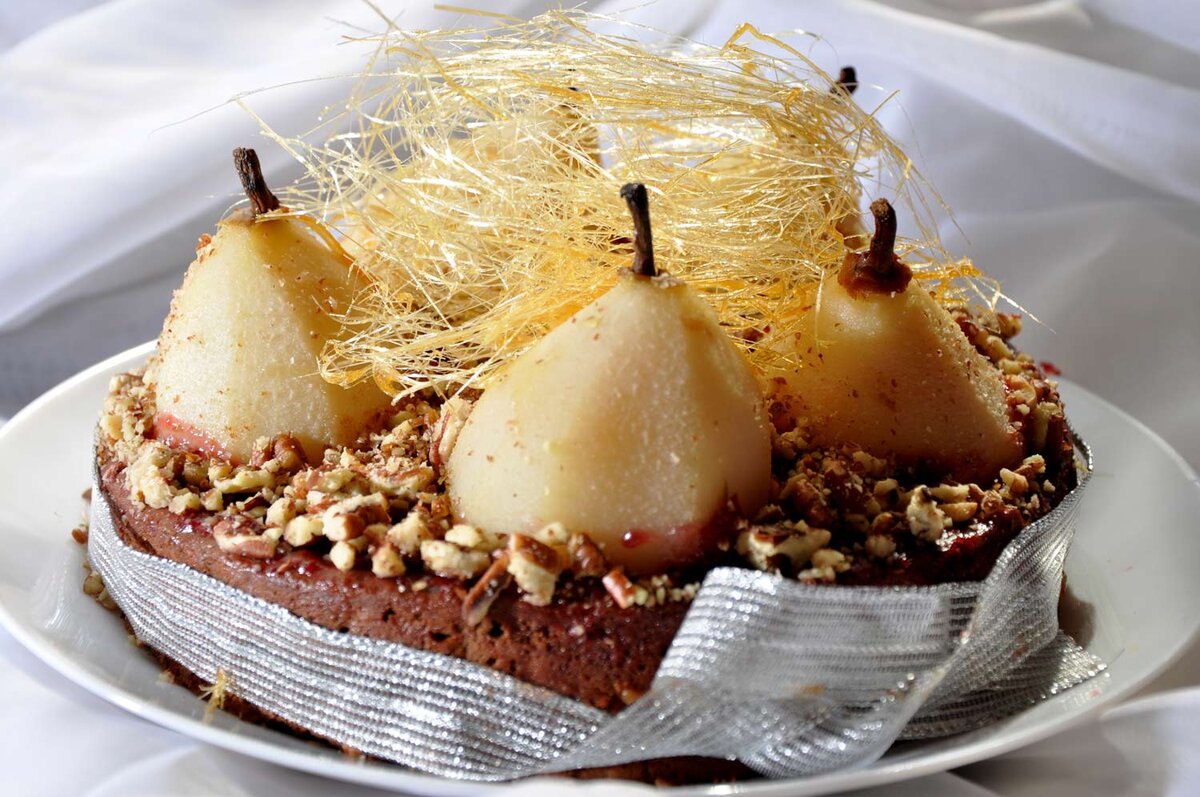12. слой без груш перевернуть на тарелку, снять бумагу.