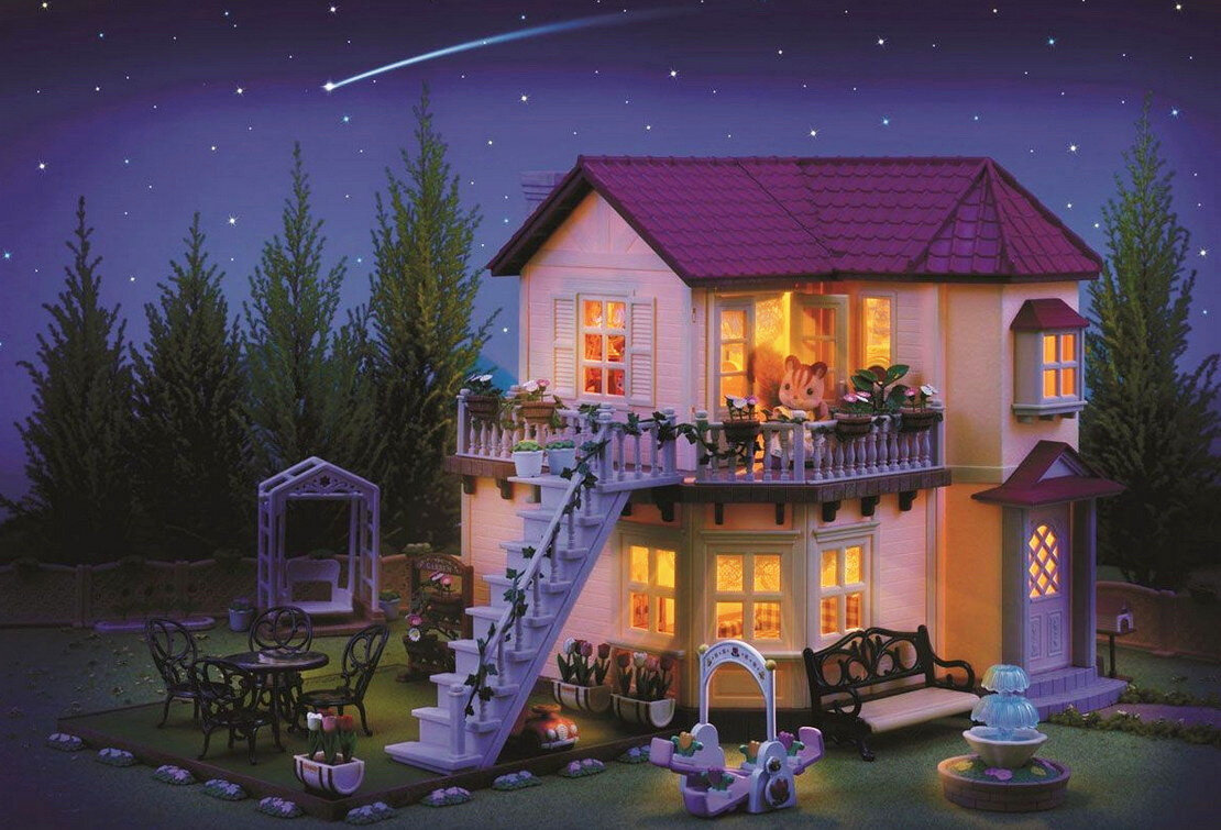 В то время как этот пятикомнатный дом является по-настоящему грандиозным, сборка является элементарной, детали просто защёлкиваются, и вы получаете очень прочный дом. Это займёт от 10 до 15 минут максимум, и вы соберёте этот первоклассный дом. А вечером в этом большом красивом доме можно включить свет, и в нём станет очень уютно. Обставить и населить дом можно при помощи дополнительных наборов Sylvanian Families. Аксессуары очень милы и хорошо проработаны. В этом мире есть печь с серебряной плитой, в деревянном стиле столы с