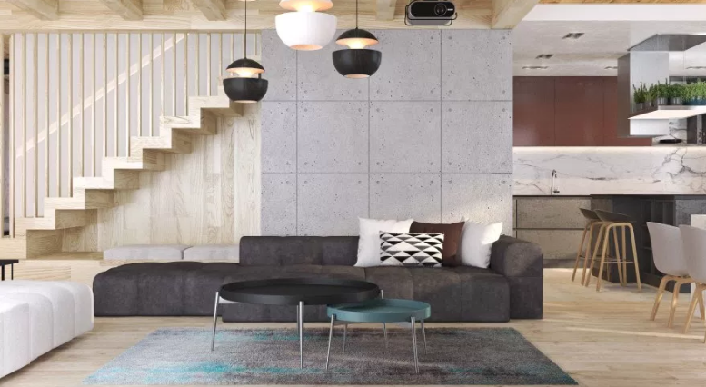Проект дизайна современного домашнего интерьера предназначен для загородного дома. Клиенты-это молодые активные люди, которые любят путешествовать и принимать только положительные эмоции от жизни. Именно они вдохновили на создание этого интерьера. Цель заключалась в создании современного и уютного пространства. В общем, много натуральных материалов и оттенков с яркими цветами были использованы в этом проекте. При входе в дом можно увидеть ярко-красные стены, которые соответствуют существующей входной двери. Есть много интересных зон отдыха: зона с диваном и телевизором, зона с камином, зона под лестницей с подушками, а также серый угол в зоне большого окна. Кухня сделана максимально функциональной с отдельно стоящим “островом”, и зоной обеденного стола, который может быть перемещен во время вечеринок. Ванные комнаты выполнены в нейтральных тонах с использованием интересных светильников и декоративных материалов. Использование различных источников освещения в проекте добавляет особую