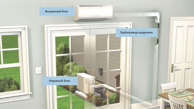 Внутренний блок устанавливается на левой стене, а наружный вывешивается под окно.