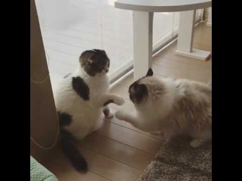 Пользователь твиттера из Японии выложил видео драки двух своих котов. Выяснять отношения котам явно лень, но нельзя же терять лицо! Оба котика медленно-медленно бьют друг друга лапами, хотя возникает чувство, что оба предпочли бы заняться чем-нибудь другим. Вздремнуть, например. Тем не менее, гордые звери продолжают неторопливо сражаться. Все по-честному: никто не отступил, никто не струсил. Настоящая кошачья драка, только очень меееедленная.