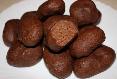 Лакомство из детства… наряду с шоколадной колбаской! Старое и доброе, безумно вкусное… Рецептов много, но этот без сгущенки. Посыпка может быть самой разнообразной — пудрой, какао, тертыми вафлями и т.д.. Главное преимущество картошки — не нужно выпекать в духовке, готовить легко и просто! Сухари нужно перемолоть на мясорубку или измельчить при помощи кухонного комбайна. Отсыпать пару ложек отдельно для обсыпки готовых пирожных. Всыпать в миску с сухарями какао, сахар и специи, перемешать. Растопить сливочное масло и влить в массу, снова перемешать. Теперь слегка подогреть молоко (кипятить не нужно) и тонкой струйкой вливать в массу, быстро перемешивая рукой. Постепенно подмешать все молоко и хорошенько вымешать. Из полученной массы сформировать «картошки» и выложить на красивое блюдо, посыпать вафлями, сухарями, сахарной пудрой, какао или украсить кремом, на ваше усмотрение и вкус! Поставить в холодильник на пару часов, лучше на дольше!