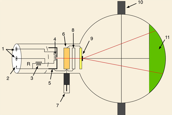 Есть источник, излучающий поток электронов в сторону экрана-фотопластинки. И есть преграда на пути этих электронов — медная пластинка с двумя щелями. Какой картины на экране можно ожидать, если представлять электроны просто маленькими заряженными шариками? Двух засвеченных полос напротив щелей.