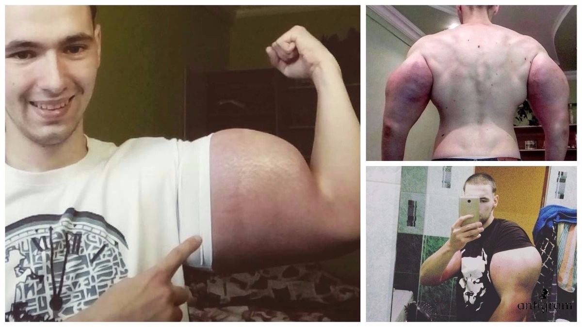 Знакомьтесь, Кирилл Терешин - 21-летний парень из Пятигорска. Еще недавно мир не знал о нем, но этой осенью Кирилл громко заявил о себе в Инстаграм. Он просто показал свои бицепсы объемом 60 см - результат инъекций "синтола", масла для увеличения мышц, и рассказал о том, что хочет быть фриком.