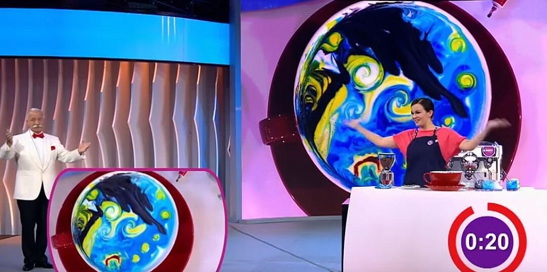 Бариста из Тольятти подарила Якубовичу «Звездную ночь» Ван Гога на огромной чашке капучино