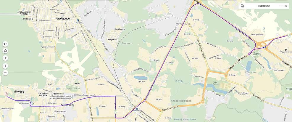 Автобус отходит от остановки «Больница №6» и делает остановки только в «новом» городе, а от Крюковской эстакады едет в торгово-развлекательный центр по Панфиловскому проспекту без остановок. На обратном пути остановки по требованию пассажиров. До «Зеленопарка» проезд бесплатный, в обратную сторону — 35 рублей. Первый автобус идет из Голубого в 8:30, последний — в 21:20, сообщили Zelenograd.ru в администрации «Зеленопарка». Из «Зеленопарка» первый автобус в сторону Голубого идет в 9:10, последний — в 22:30. Интервалы движения — 20 минут.