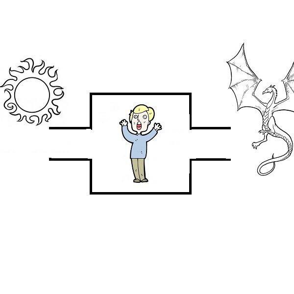1) левый выход из увеличительного стекла и меня сожжет солнце; 2) у правого выхода дракон, который спалит меня до тла; Куда мне бежать? Нужно что-то делать, выбирай! Правильный ответ: Нужно дождаться ночи и выйти через левый выход.