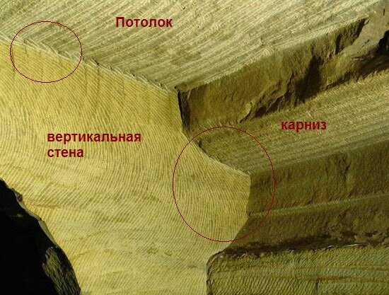 Первым шагом было построение вертикального ствола или горизонтального портала. Затем, пещера вырезалась сверху вниз и последовательно по слоям. Согласно конструкции, скальная колонна, наклонный потолок и боковые стенки также были сформированы послойно сверху вниз. Каждый слой может иметь толщину двух смежных горизонтальных жесткостей, как показано на рисунке. Этот процесс повторяли до самого основания (пола) пещеры. Как обсуждалось выше, отпечатки были вырезаны после образования высоты пещеры до подходящей глубины.