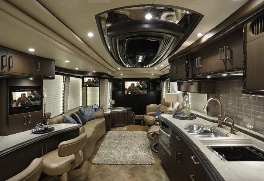 Любители автомобильного путешествия знают, насколько важен хороший и комфортный кемпинг. Именно поэтому многие путешественники отдают предпочтение поездке в собственном доме на колесах, в котором есть все необходимое: ванная, кухня и все удобства. Если у вас есть деньги, то советуем приобрести современный особняк на колесах, оснащенный самыми передовыми функциями и возможно даже превосходящий отельные номера. А чтобы не потеряться в широком ассортименте моделей, предлагаем познакомиться с самыми роскошными и дорогостоящими домами на колесах.