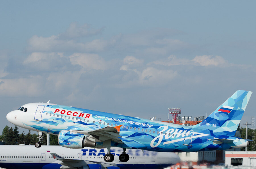 Сегодня улов из Домодедово бортов не в своей фирменной ливрее. Для начала Зенитолет авиакомпании Россия Airbus A319. VQ-BAS.