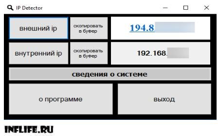 Узнать IP своего компьютера довольно легко, хотя для неопытного пользователя, это может оказаться довольно непростой задачей. Чтобы упростить задачу, я написал небольшую программку. Я не могу назвать себя программистом, но что-то всё-таки могу.) Программа может определить внешний и внутренний IP адрес компьютера. Также у неё есть и дополнительные функции. В ней, вы можете просмотреть сведения о системе, сетевые подключение, общие папки.