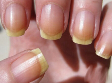 3. Серый или с желтизной оттенок ногтей, наличие бороздок на них свидетельствует о недостатке селена. витамина РР и провитамина В5. Именно селен является наиболее важным элементом для здоровья ногтей, а получить его можно, употребляя черную смородину, чеснок, отруби, морепродукты и оливки. Витамином РР богаты грибы, рис, орехи, дрожжи. А куриное мясо, субпродукты, брокколи ценят за наличие витамина В5.