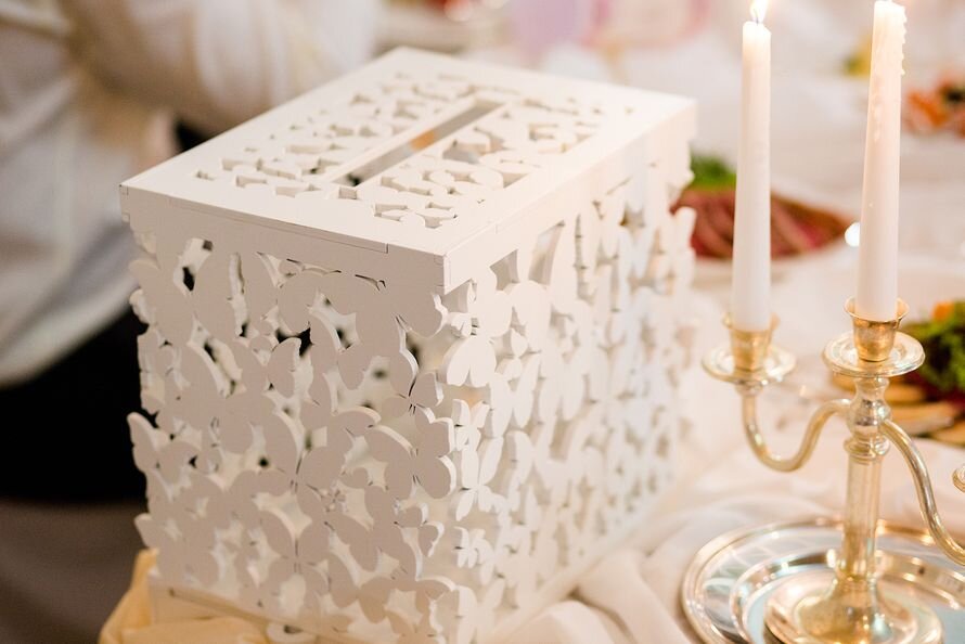 Свадебный сундук (сундучок, бокс) — это красиво украшенная коробка для сбора и хранения денег, подаренных молодым на свадьбе. В него складываются конверты и открытки с купюрами в момент вручения подарков. История современного свадебного сундука тесно связана с сундуком под названием «кассоне», в котором хранили одежду и прочие домашние принадлежности. Специально декорированные кассоне использовались как место для хранения приданого невесты. Многие века было принято иметь такой сундук, чтобы было с чем выдавать девушку замуж. Время шло, и громоздкий сундук превратился в компактный сундучок, в который гости стали делать свой взнос в семейную жизнь молодожён. Как правило, свадебный сундук делается из плотного картона и украшается тканью, лентами, кружевами, бусинами, цветами и прочим декором. Дизайн для него подбирают непременно согласно стилистике свадьбы. Также сундук можно заменить на любую другую подходящую ёмкость: корзину, коробку, декоративный скворечник, клетку, чемодан и пр. Ес