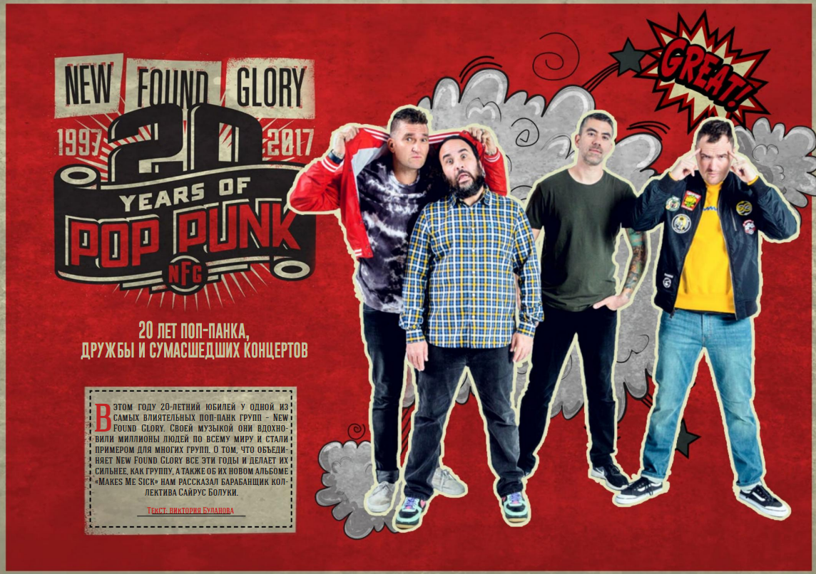 В этом году 20-летний юбилей у одной из самых влиятельных поп-панк групп – New Found Glory. Своей музыкой они вдохновили миллионы людей по всему миру и стали примером для многих групп. О том, что объединяет New Found Glory все эти годы и делает их сильнее, как группу, а также об их новом альбоме «Makes Me Sick» нам рассказал барабанщик коллектива Сайрус Болуки.