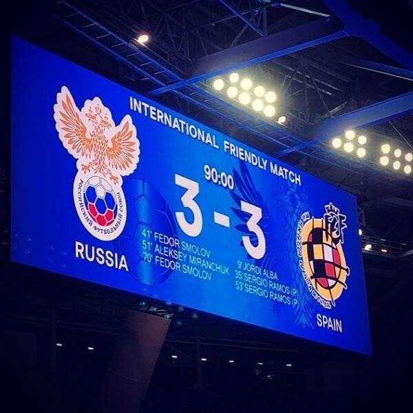 Все мы знаем, что наши футболисты – не самые лучшие в мире. Наши футболисты – люди, не имеющие шансов стать таковыми в ближайшее время, т.е. выиграть Кубок чемпионов мира. Разово выстрелить могут, но выигрывать постоянно - нет. И все это прекрасно понимают. После тоскливо-невнятного матча в обновленных «Лужниках» с Аргентиной, куда практически все 78 750 болельщиков в первую очередь пришли посмотреть воочию на лучшего футболиста мира, ничто не предвещало какой-то другой игры с испанцами. Тут было важно выдержать паузу в своих эмоциях, чтобы не впасть в эйфорию, потому что после матча я готов был взахлёб каждому рассказывать какой Смолов - красавец, какой Жирков, какой Миранчук, Дзагоев, Кузяев, как они все боролись за каждый мяч, и не мог уснуть. Матч с Испанией показал (доказал), что у нас есть как минимум один отличный нападающий, есть молодые, талантливые, креативные игроки в центре поля. Что мы можем играть в футбол не только бо́льшую часть матча перекатывая мяч у своих ворот с н