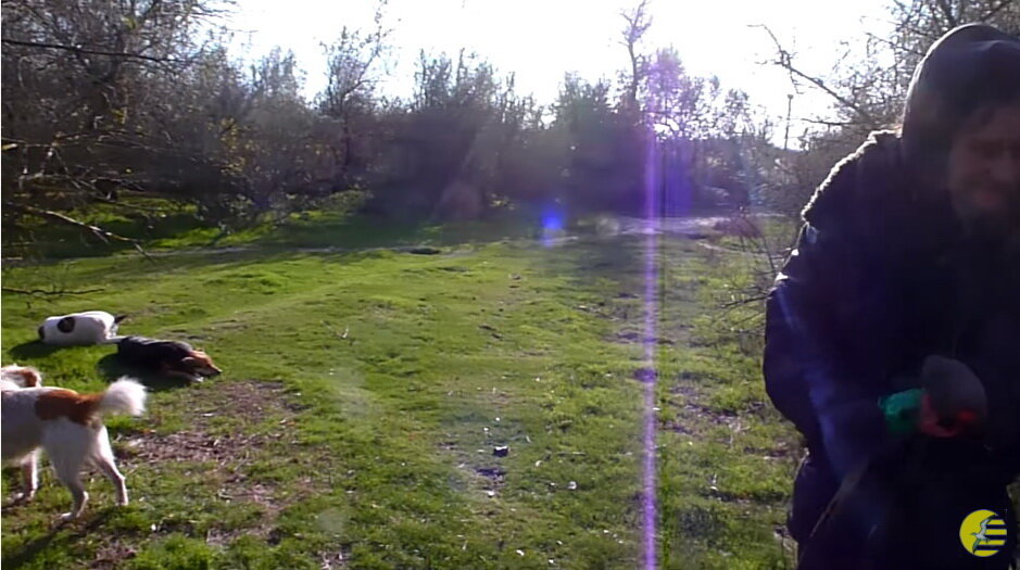 - Здравствуйте! Вы не видели там бомжа с собаками?