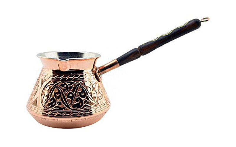 Традиционно джезвы изготавливали из меди, поскольку она отличалась высокой теплопроводностью. Да и на сегодняшний день лучшими изделиями считаются медные. Ведь при нагревании такого изделия температура равномерно передается по всей площади турки, что способствует равномерному нагреву кофе. Несмотря на большинство плюсов медных изделий (в том числе и проверку временем) у нее есть недостаток. Медь впитывает запах кофе, поэтому в медных джезвах рекомендуется варить только один какой-то вид напитка.