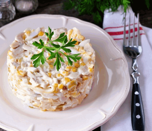 Салат с консервированными шампиньонами и кукурузой