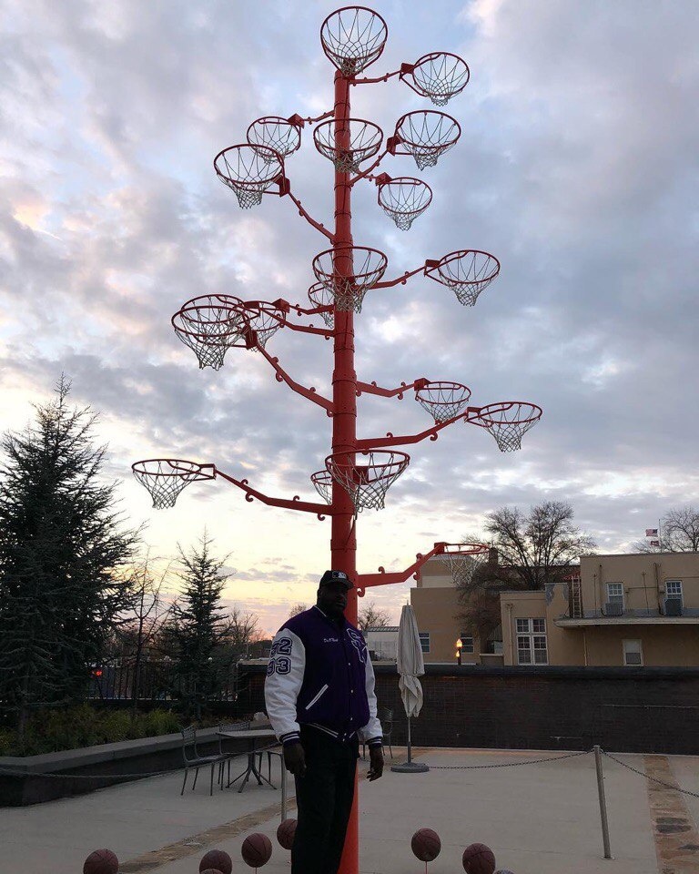 В субботу знаменитый центровой показал инсталляцию «Дерево сломанного кольца», которую он собрал из тех самых 19 колец.